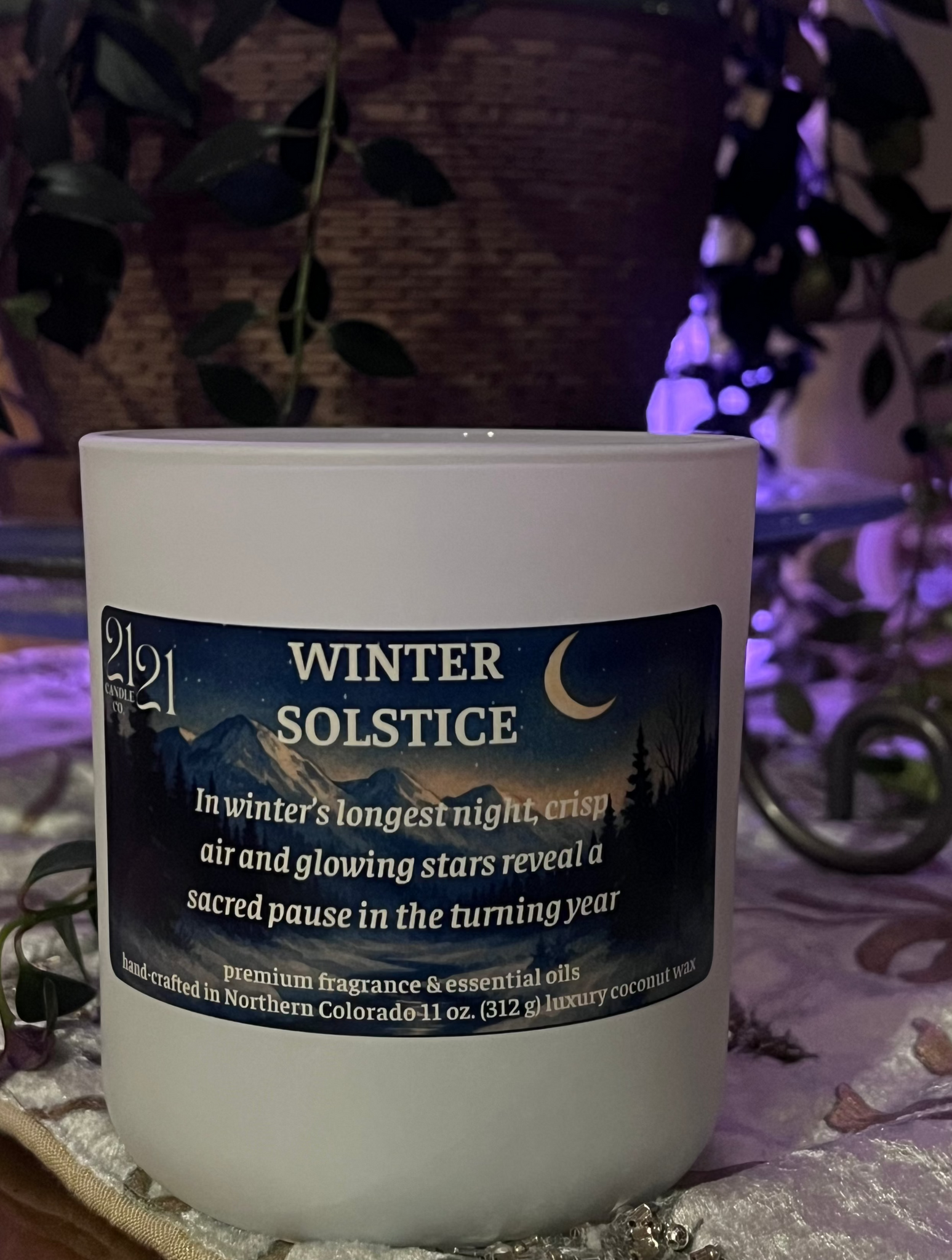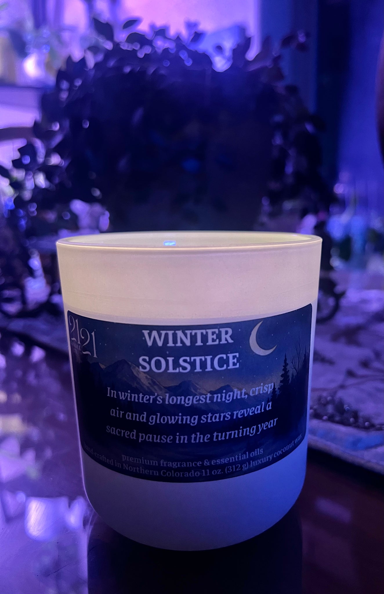 Winter Solstice embodies the magic of the year’s longest night—a moment when the world stands still beneath a sky of glowing stars. Fresh blue spruce and juniper berry lift the air with a cool, resinous brightness, while rosemary and cedar add grounding warmth. The result is a peaceful, meditative winter fragrance that feels both sacred and soothing.